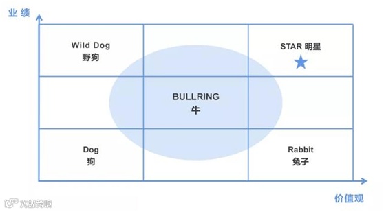 这张图,HR都不陌生,是阿里的绩效考核分布。按照业绩和价值观两个维度,将所有员工分为5种类型。