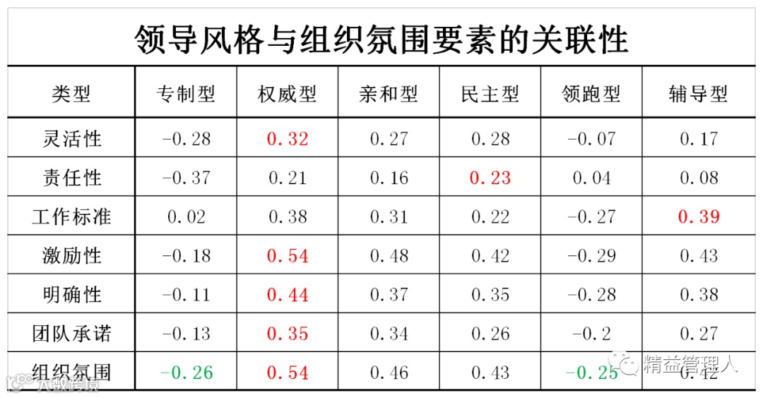 专制型、领跑型(统称暴戾型)领导的组织氛围是负数,即为消极负面;除上述两种以外的其他四种(统称服务型)领导的组织氛围是正数,即为积极正面。