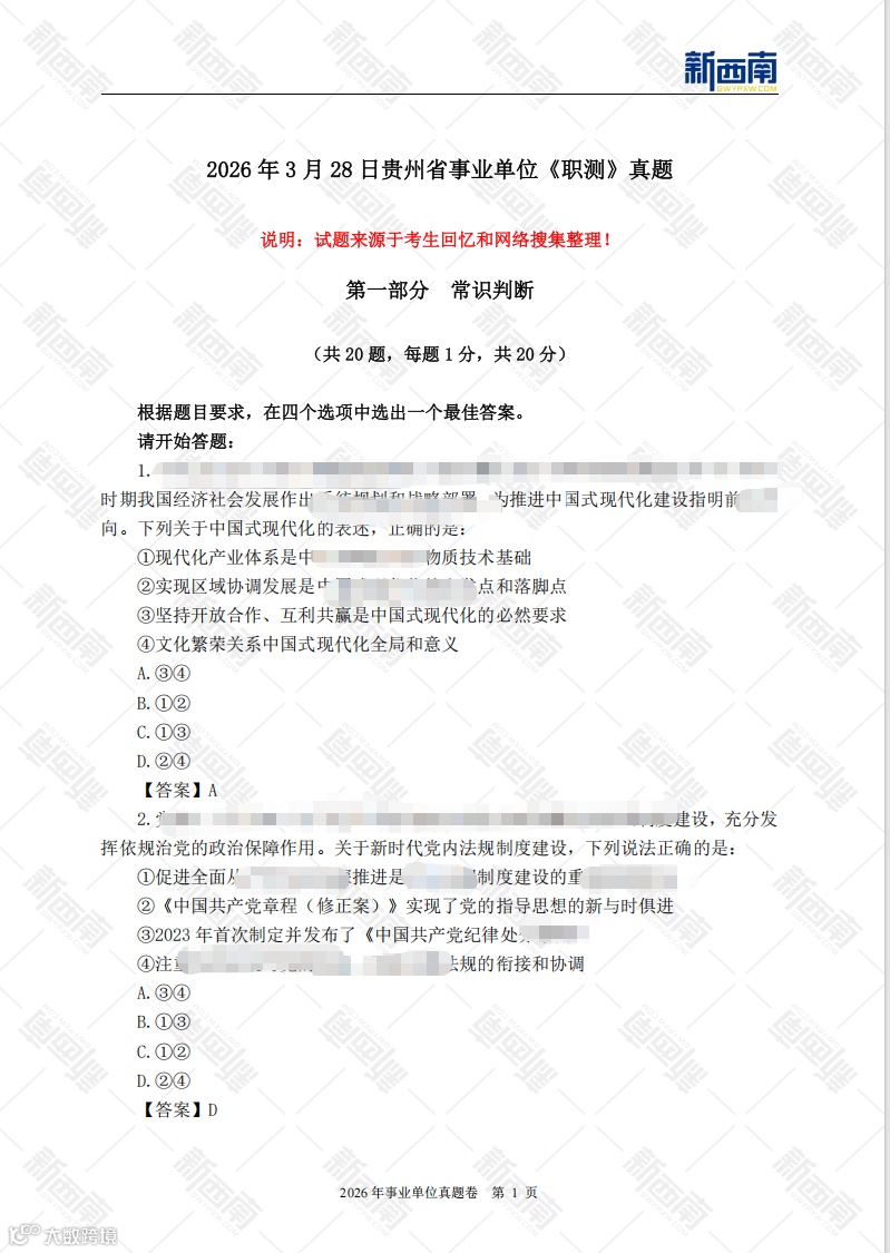 (试题来源于考生回忆及网络收集整理)