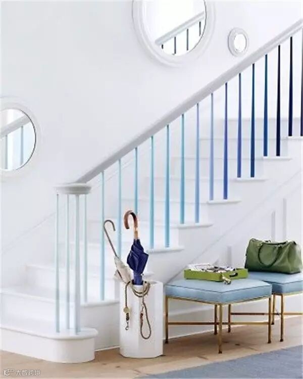 只要你愿意,总能在室内为渐变色找到一席之地,装饰画、床品四件套、楼梯及其扶栏等,都能为室内增色不少。