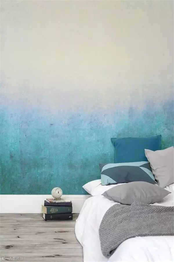 如果你觉得纯色墙太过于单调乏味,也不好意思请会画画的朋友来墙绘,那么最简单的方式莫过于选上一种喜欢的颜色,刷上一面渐变色的墙。