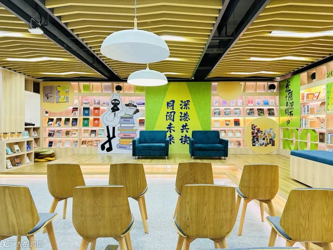 館內深港元素隨處可見,設有深港主題圖書聯展區、雲尚書房聽書區、共享沙龍活動室和休閒閱讀區四大分區,不僅展示深港優秀圖書創作成果,還邀請深港文化名人、科技創新領軍人才開展「深港閱讀推薦官」等深港主題讀書會與綠色科技創新主題對談。