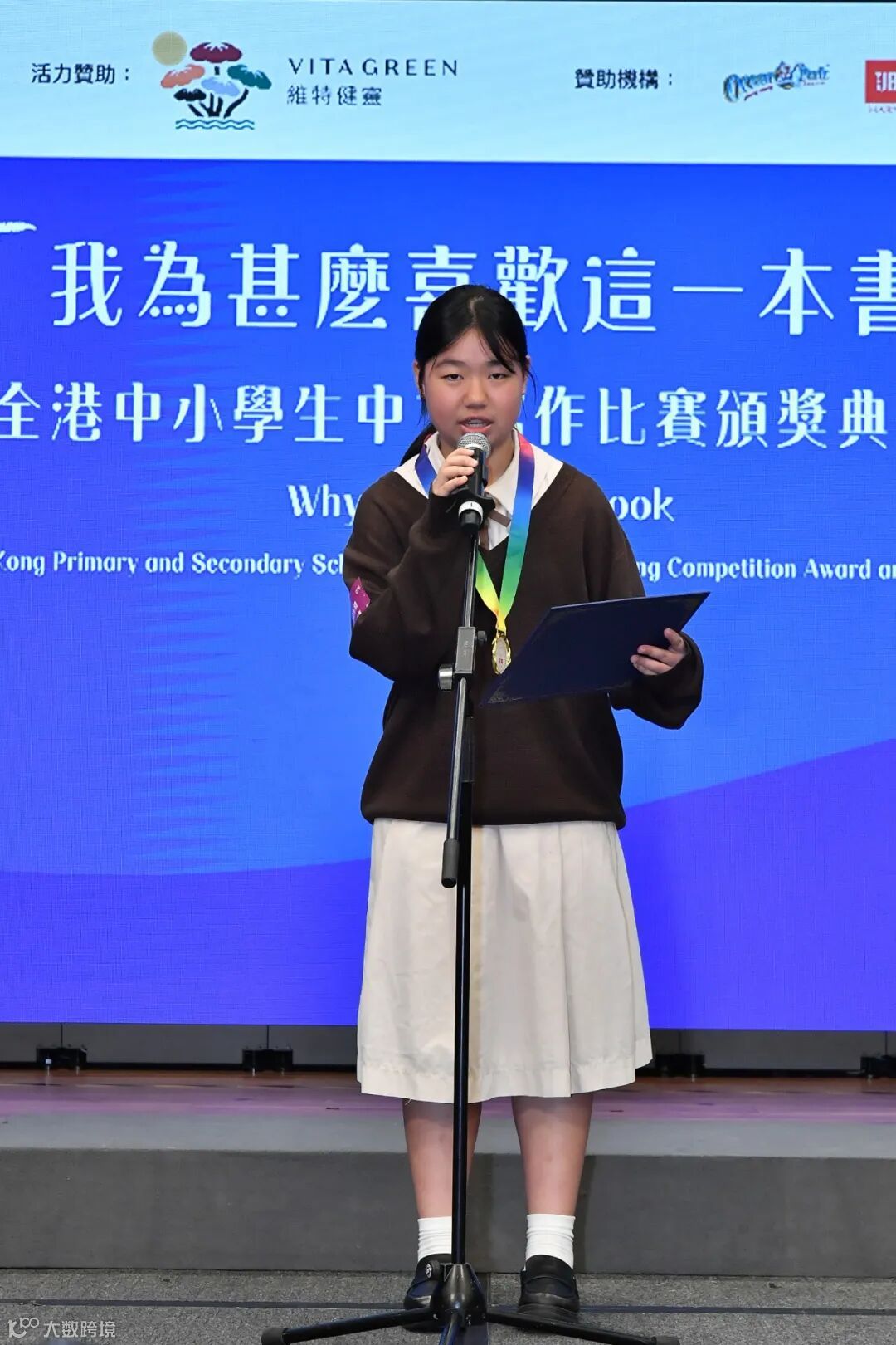 圖 | 高小組冠軍得獎者蔡浩天同學朗讀其得獎作品《黑暗之城:九龍城寨的日與夜》 (節段)