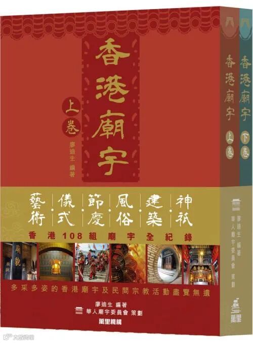 本書為華人廟宇委員會聯同香港科技大學華南研究中心出版成果,中心主任廖迪生教授與其研究團隊着力研究香港108組廟宇,再以深入淺出的文字,配合廟宇及儀式活動照片,介紹及分析多采多姿的香港廟宇及民間宗教活動。書本分上下兩卷:上卷以香港108組廟宇為對象,介紹廟宇之歷史、建築結構、供奉神祇及相關風俗節慶活動;下卷為分析專論,闡述香港廟宇及民間宗教活動中的基本概念,分析節慶、儀式活動、廟宇營運及其與地方社會的關係,並且探討不同類型之廟宇結構及其藝術元素。