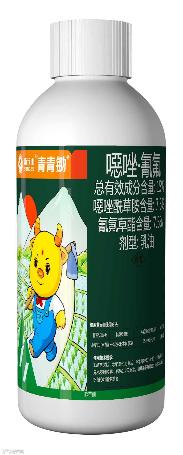 由湖南新长山研发的青青锄®(15%噁唑·氰氟乳油)对禾本科杂草高效,如稗草、千金子、马唐等。另一款欣火烧®(40%敌稗·氰氟乳油)产品具有多靶标作用机制,能抑制植物脂肪酸的合成以及光合作用。对多抗性杂草防效优异,死草速度快,一天就可见杂草出现明显反应。