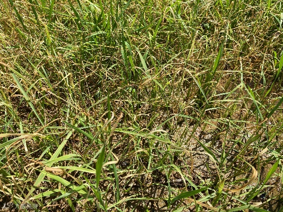 为了探索青青锄+欣火烧组合在晚稻高温极端环境下的除草效果,生测技术部在温度达到36℃时再进行施药。此次试验效果如下图所示。在药后1d禾本科杂草(稗草、千金子)已经开始大面积泛黄,药后3d时禾本科杂草地上部已经完全萎焉枯死,除草效果十分显著。