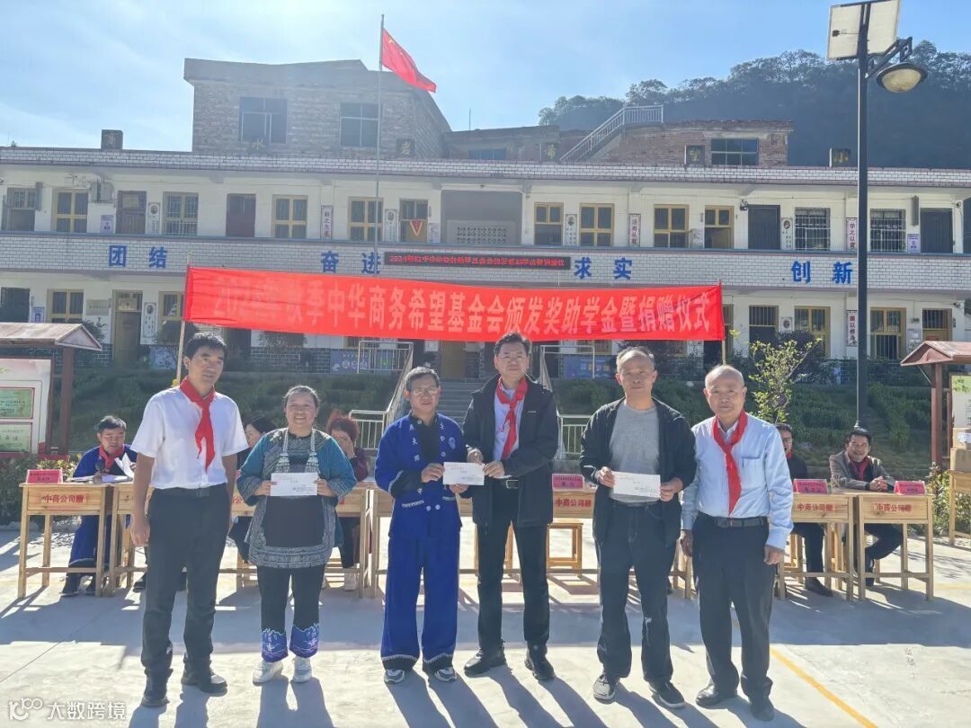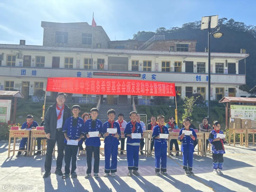 2024年10月26日,聯合出版集團旗下中華商務聯合印刷廣東有限公司總經理徐明章先生、中華商務希望基金會主席陳均先生、紫荊文化集團監察部高級經理畢見行先生及希望基金會工作組成員羅俊麗女士一行四人前往貴州省黔南州荔波縣中商水岩希望小學(簡稱:水岩小學),參加「2024年秋季中華商務希望基金會頒發獎助學金暨捐贈儀式」,為學生及教師發放獎助學金。
