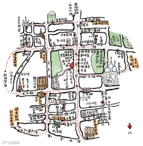 老弄堂內部一萬字也寫不清楚,一幅圖就說得很明白。我們通常還是依賴文字——「上海交通臨時改道」的消息,一般還是用文字,怎麼換乘,怎麼一個東南西北,如果是圖,一眼就讀懂了。地圖是最古老、最現代的方式。