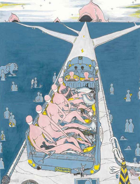 金宇澄的繪畫痴迷於「現場與細節」,充滿層層叠叠的敘事,將歷史回憶、現實洞察與未來想像,跨時空交織起來,形成一個個超現實的世界劇場。