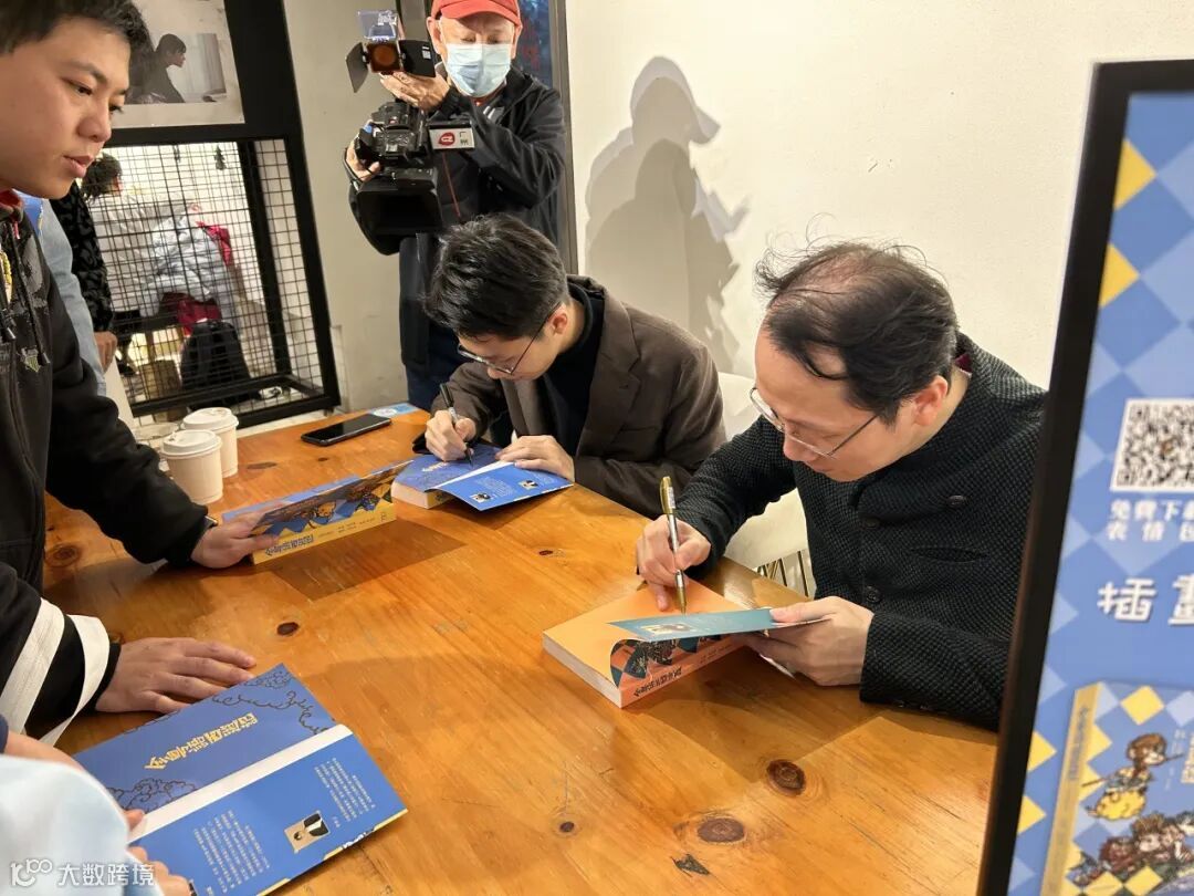 圖 | 作者李沛聰(右)、插畫師李卓言在現場為讀者簽售、繪畫