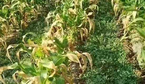 2,4-D药害会出现玉米叶片卷曲成洋葱叶,下部茎叶丛生在一起,气生根上卷不与土壤接触;施用辛硫磷过量可致叶片局部或大部分变白,最终导致叶片干枯似冻害状。此外,上茬作物施用了巨星、苯磺隆等除草剂,如果间隔时间较短,会产生残留除草剂药害,导致玉米药害发生。