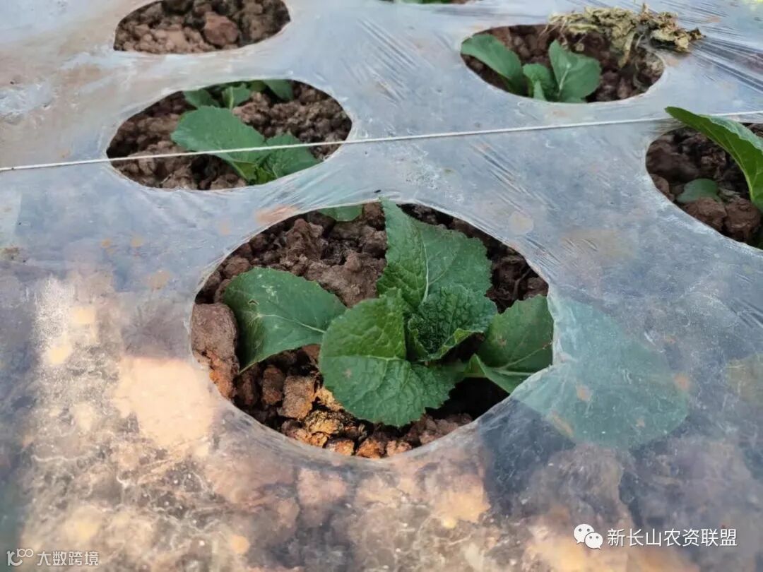 白菜发芽后,用相对应工具挑破地膜,用线或者土封压膜口。