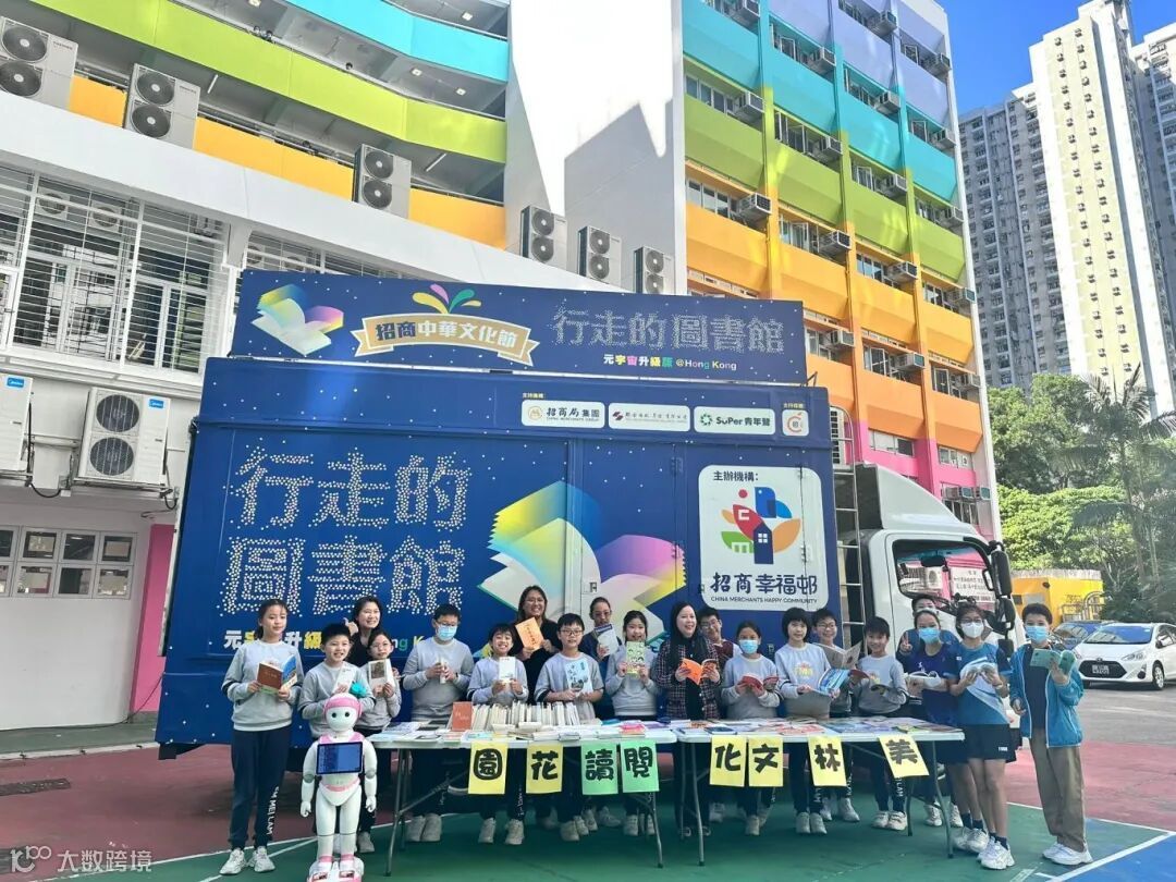 啟動禮結束後,「行走的圖書館」又走進加拿大神召會嘉智中學、香港道教聯合會青松中學、大埔舊墟公立學校(寶湖道)、大埔舊墟公立學校、循理會美林小學、瑪利諾中學、聖公會聖紀文小學、慈雲山聖文德天主教小學、香港教育工作者聯會黃楚標中學、裘錦秋中學(屯門) 、慈雲山天主教小學、沙田救世軍田家炳小學、香海正覺蓮社佛教黃藻森學校、香海正覺蓮社佛教正覺中學、圓玄學院陳國超興德學校共15間香港中小學校,為每間學校贈送數百冊中華傳統文化主題精選圖書,涵蓋中國語言文字、中國文學、中國通史及文化、中國科技等多個範疇。集團SUPer青年營會員同事隨圖書車到校為師生推介圖書,並協助學生到元宇宙體驗項目展位前體驗VR設備及互動項目,感受閱讀和科技帶來的樂趣。