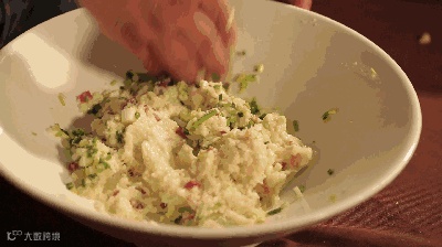 (二)香芹菜、葱(只要葱白)同洗淨的冬菇、瘦肉剁成糜,肥肉切成幼粒,加進茨菇糜,再加鹽和生油拌勻。