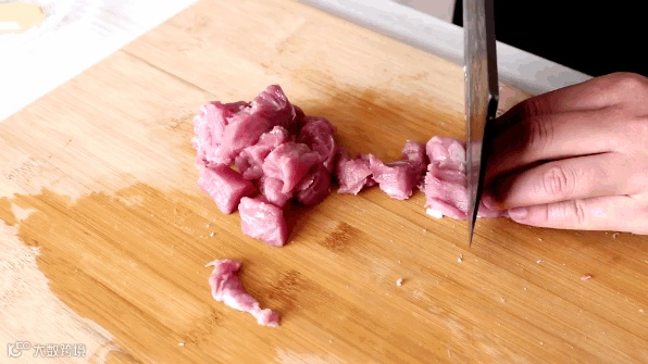 做法:肥豬肉切幼粒,瘦豬肉剁成肉茸,馬蹄用刀面拍碎,荷蘭豆切方粒,香芹切成每條約三四分。