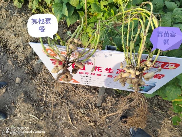 通过现场观摩,用雅颜方案的花生植株花生双仁果多、果匀、下针齐整,植株矮壮,侧枝粗壮。同其他套餐相比果实数量多、果型白净颜值高、根多根长,不贪青,不晚熟。
