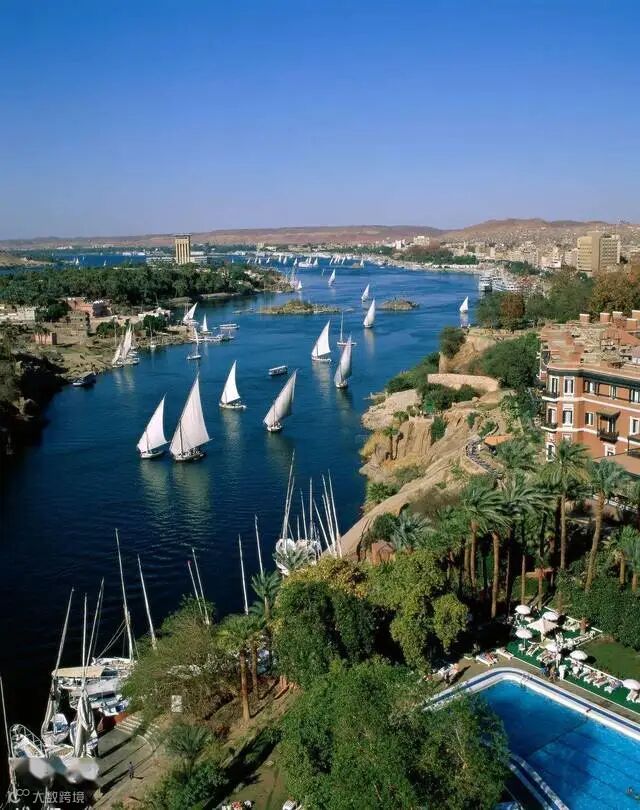 埃及的母親河尼羅河是南北流向,受印度洋季節風影響,夏吹西南風,冬吹東北風。尼羅河源頭在埃及南部,上游船向北航行時,藉助落差與水流,直接漂流而下。船逆流向南航行時,要克服落差與逆流,聰明的古埃及人就在船上立根桅杆,扯上一塊方帆,藉助冬季的東北季風吹動帆,使船逆流而上。這種天賜的季節風條件,只有南北流向的尼羅河才可以享用。於是,世界最早的帆船,就在這裏誕生了。