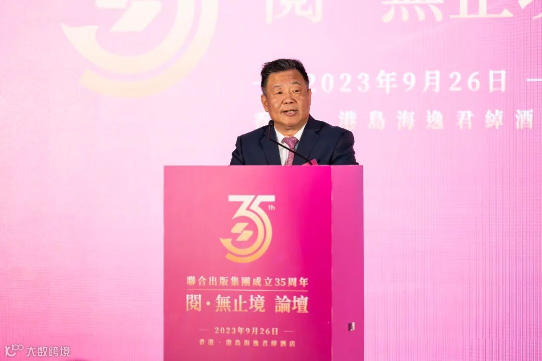 值此中華人民共和國成立74周年之際,我們齊聚一堂,參加聯合出版集團成立35周年「閱‧無止境」論壇。首先,我代表紫荊文化集團,向李家超行政長官、向蒞臨現場指導的各位嘉賓朋友、向長期支持聯合出版集團發展的各界同仁,表示衷心的感謝!