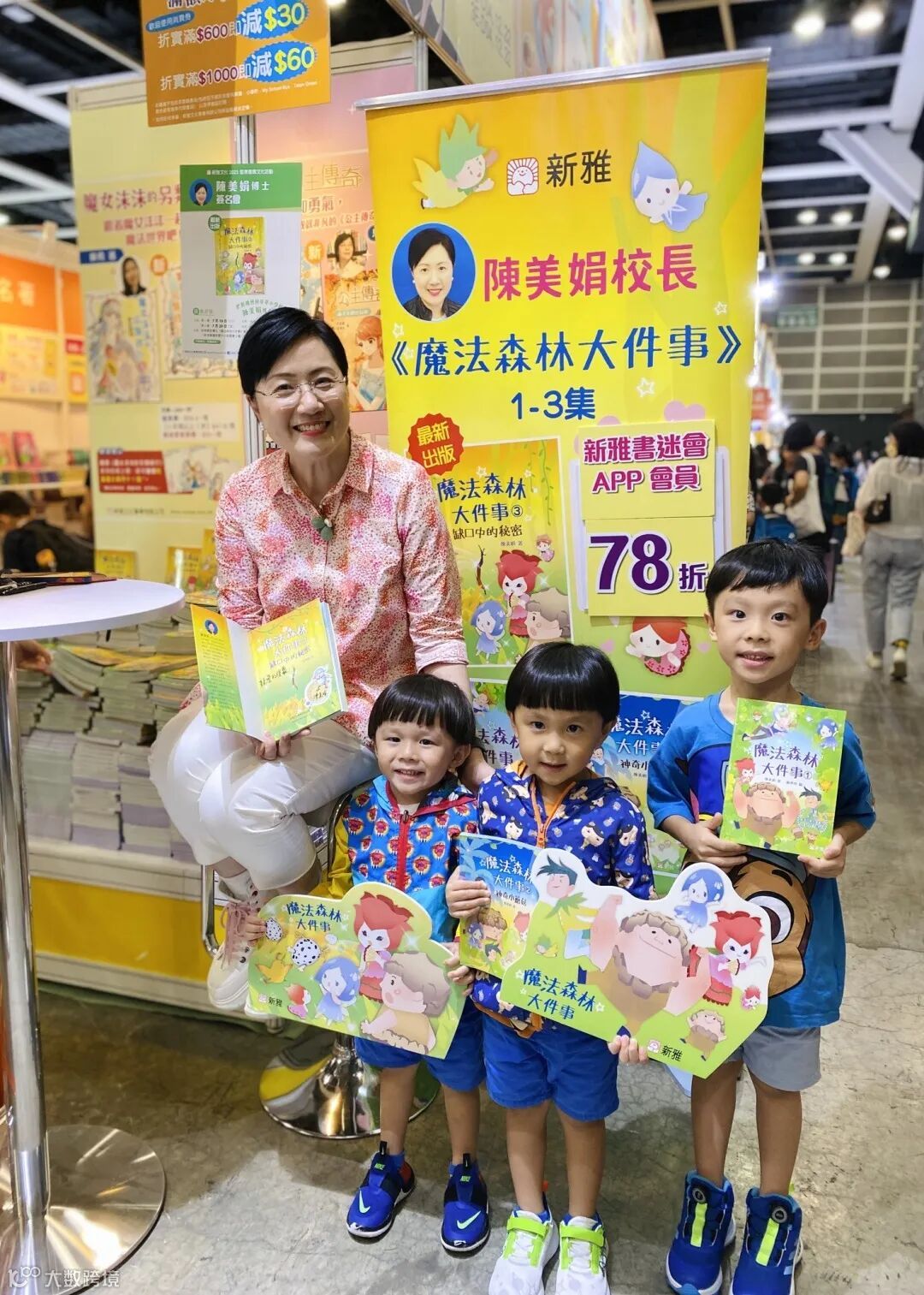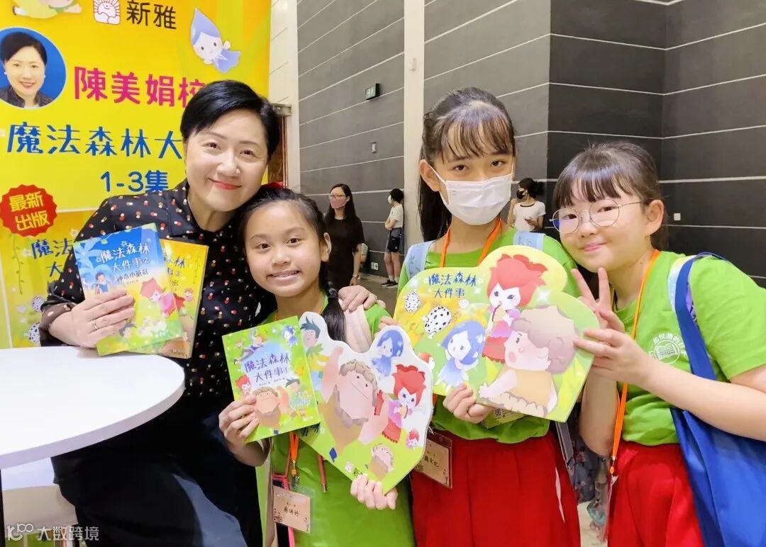 《魔法森林大件事》系列作者兼英華小學校長陳美娟一連兩日到新雅展位簽書,並親切與大小讀者合影。