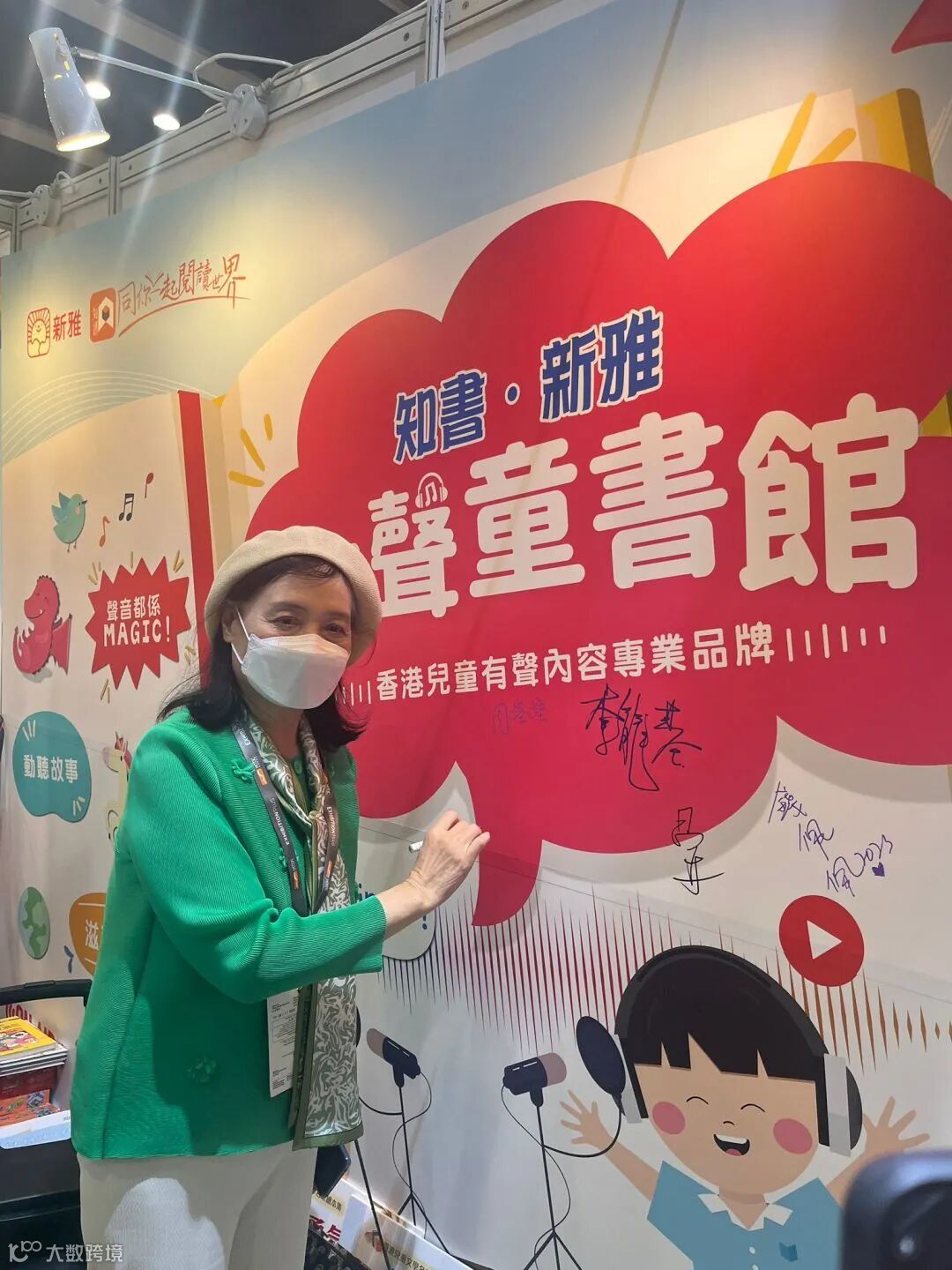 香港兒童文學名家周蜜蜜到聯合電子展位,參觀並體驗「知書•新雅兒童有聲童書館」。