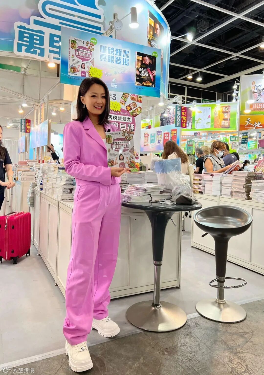 香港藝人兼暢銷書作者陳倩揚7月19日快閃萬里機構展位與讀者見面交流並簽書合影。