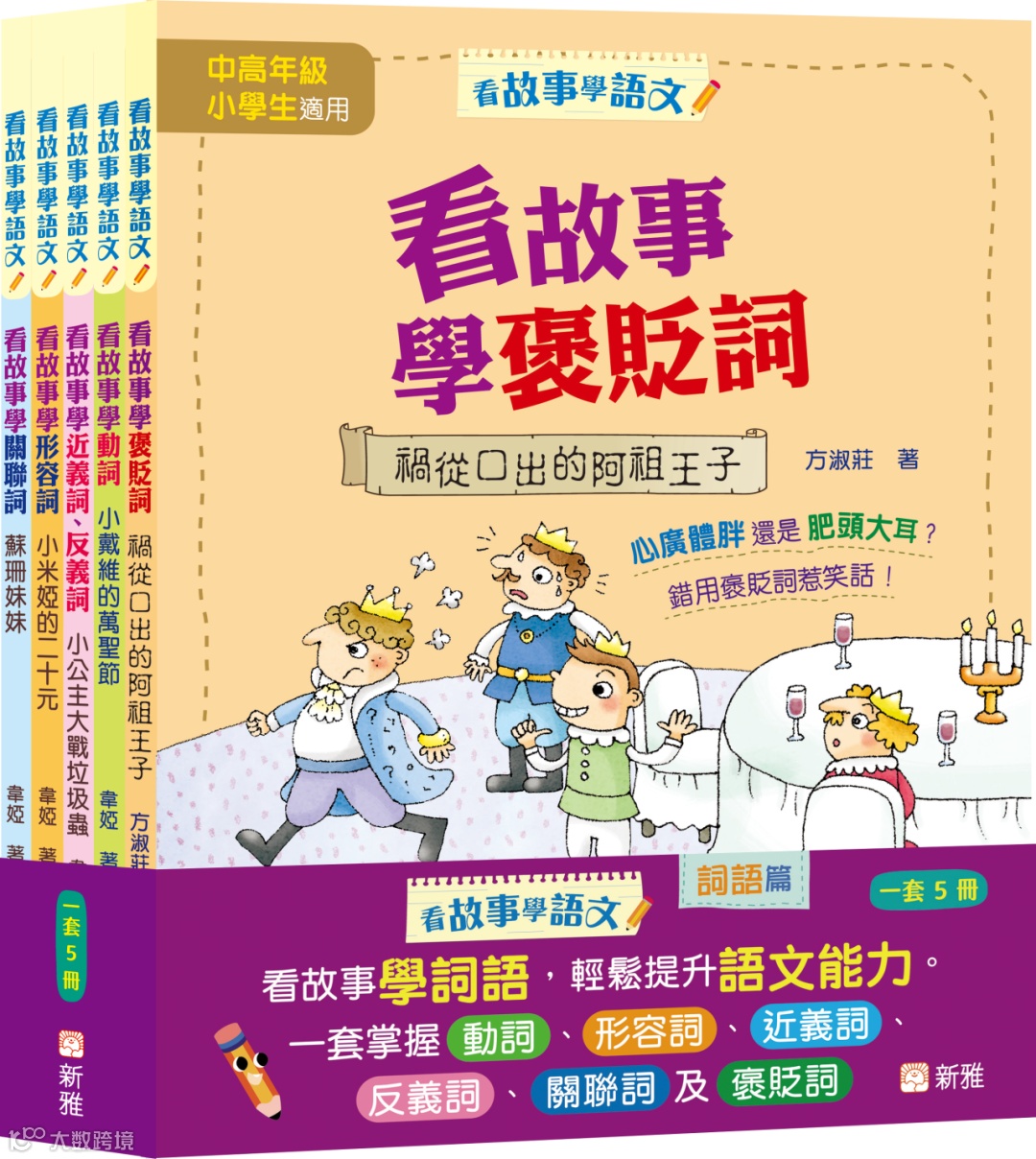 看故事學詞語,一套掌握動詞、形容詞、近義詞、反義詞、關聯詞及褒貶詞,輕鬆提升語文能力。