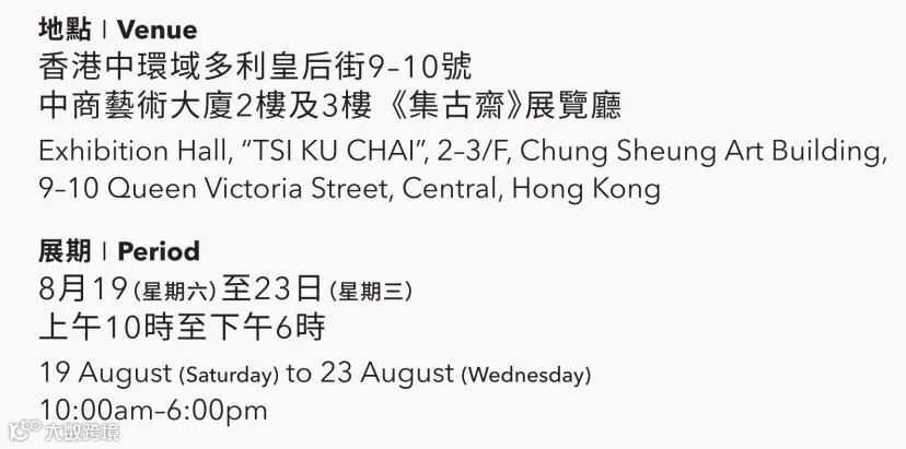 展覽首日2023年8月19日(周六)下午4時於香港中環集古齋2樓展覽廳舉辦開幕典禮。