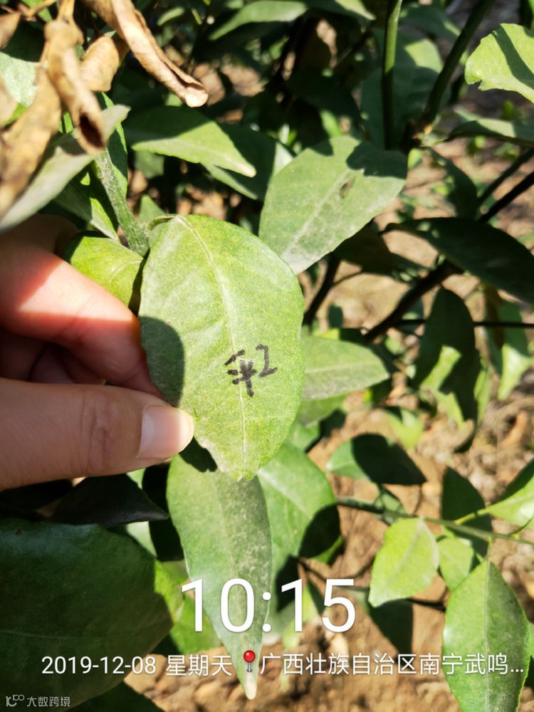 这持效期,我们追踪到了第31天,叶片依然很干净,桔农朋友说,效果很好,若年前天气温度不是持续20度以上高温的话,预计春节前不需要用药。