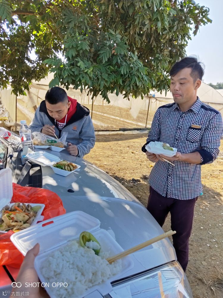 打药很辛苦,中午饭也是这么简单解决了,委屈我们两位李帅哥了,下午继续打药。