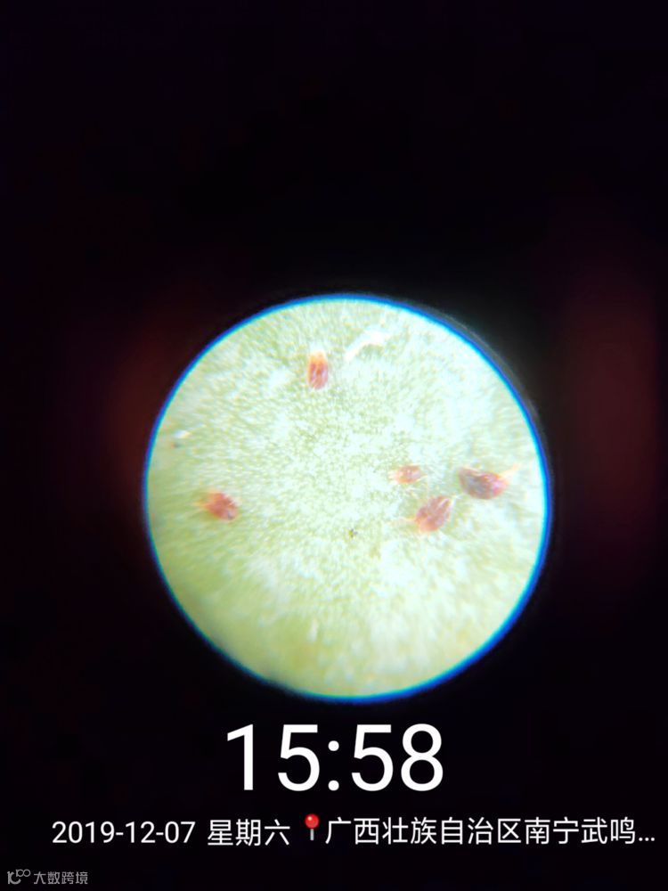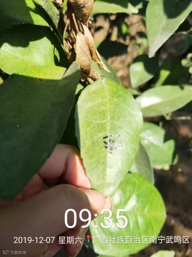 2019年12月7日,小编在广西南宁武鸣区宁武镇下乡,发现有一块2年的果园红蜘蛛已经泛滥成灾,平均每百叶红蜘蛛基数达到了300头,枝条上都很多,还不赶快防治,柑橘都要哭了。