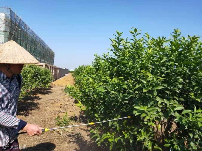 事不宜迟,桔农朋友赶紧开始背着喷雾器打药,这一片果园300棵树呢,想想都觉得挺辛苦的!