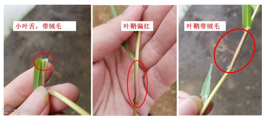 小叶舌,叶舌边有小绒毛,叶鞘偏红,带绒毛
