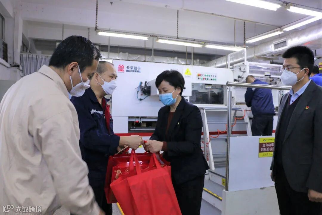 1月13日,紫荆文化集團副總經理薛麗軍女士一行來到中華商務深圳地區公司,由深圳安全董事總經理吳亞勇、廣東公司常務副總經理徐明章及總經理室成員陪同,走進中華商務深圳地區公司生產現場,與前線員工交談,送上慰問品,感謝他們在各自崗位為公司發展所付出的努力和貢獻,並叮囑他們注意安全生產、做好個人防護。慰問期間,薛總探望困難員工代表並送上慰問金。