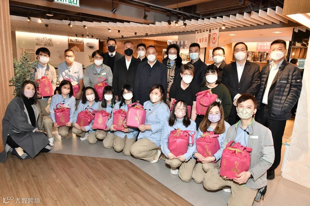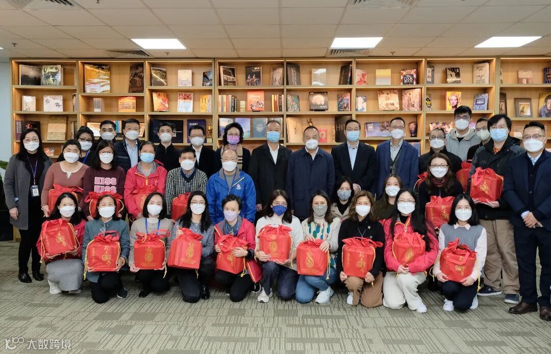 1月16日,紫荊文化集團董事長毛超峰先生、董事吳保安先生來到香港三聯書店灣仔文化生活薈慰問一線同事。聯合出版集團傅偉中董事長、李濟平總裁及吳靜怡董事副總裁陪同。香港三聯門市前線員工收到新春福袋,感受到集團溫暖的關懷和祝福。