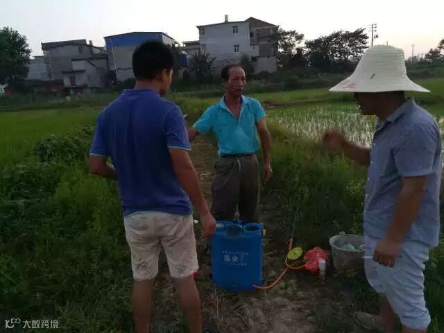 和张大大一起在安乡县黄山头镇调查2018年除草剂新品表现。