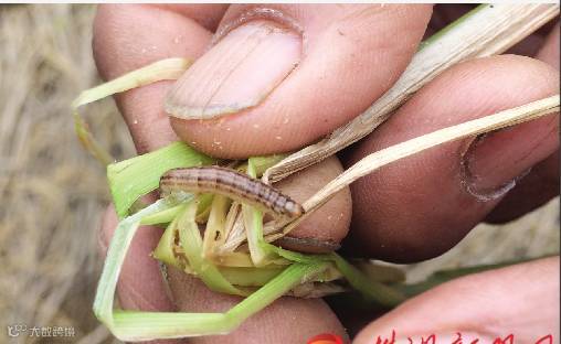 “这是‘钻心虫’,吃空了稻秆,切断了茎干,是稻禾倒下的罪魁祸首。”村民们说。