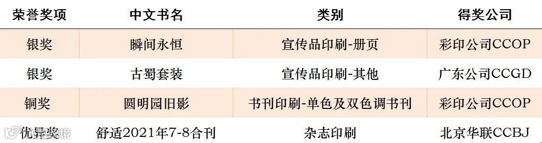 在本次賽事中,中華商務篩選出多件工藝精湛、富有設計感的作品參賽,最終在宣傳品、書刊印刷等類別中脫穎而出,奪得四個獎項,具體獲獎名單如下: