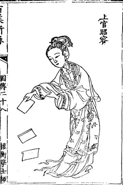 圖 | 清代王翽繪《百美新詠》中正在拋灑詩卷的上官婉兒