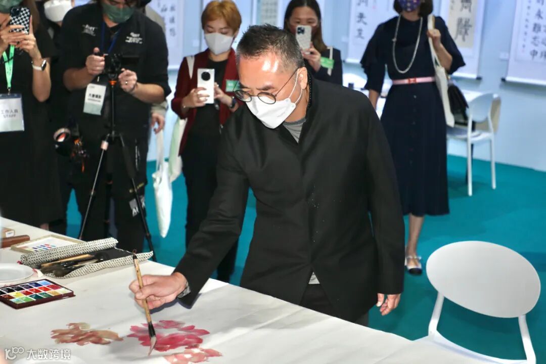 圖 | 香港美協主席、參展藝術家林天行先生現場揮毫創作