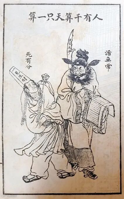這本《暗室燈》起首有30幅傳統中國佛教和道教死後世界的插圖,當中有不少在大坑虎豹別墅(今為虎豹樂圃)俗稱「十八層地獄」的十殿閻羅浮雕出現。例如第一幅標題「人有千算,天只一算」。為甚麼人算不如天算?道教經典《太上感應篇》有言,人身上有「三尸神」,我們不論犯了甚麼過錯,它們都記錄無誤,每逢庚申日,便報告天庭。懲罰是甚麼呢?「大則奪紀,小則奪算。」犯大過奪紀,即12年壽命;小過奪算,即100日壽命。