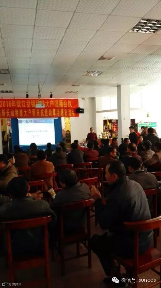 2016年2月28日,湖南新长山联合益阳欧博农业、湖南金色农华种业,在益阳市欧江岔镇举办了一场接近100人的种植大户会议,与会者种植面积大都在100亩-1000亩之间。我们本次会议主题是:稻田抗性杂草治理。