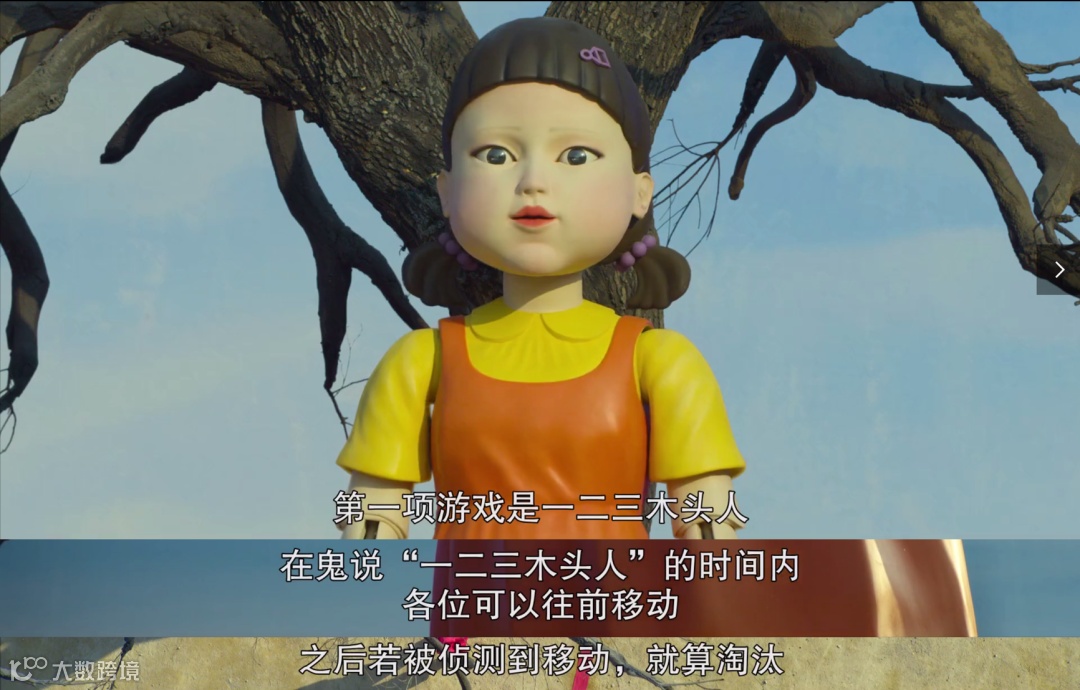 游戏的第一关是《一二三,木头人》。规则很简单,在5分钟内从起点跑到终点,在这个过程中,当娃娃喊一二三的时候可以快速跑动,娃娃回头时则必须保持当下姿势,如果违反游戏规则将会被动态监测器捕获,遭狙击手击杀。