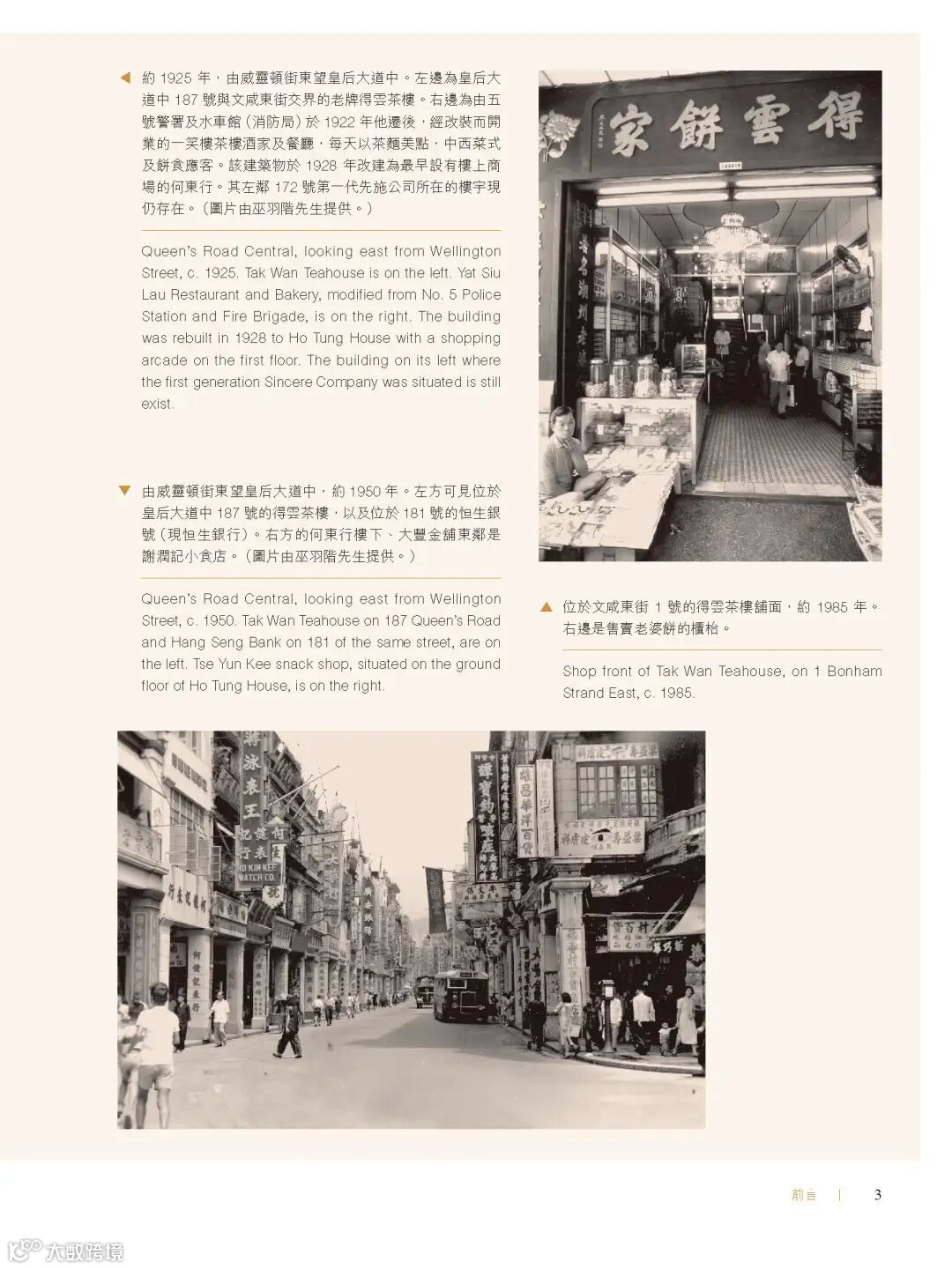 1950、60年代,不論住戶、公司或店鋪,皆會泡一壺茶以供飲用。中區居民多往購買茶葉的茶莊,有陳春蘭、華生、天香、英記及奇香村等,亦有多家位於上環及西營盤一帶。1960年代,筆者在高陞街一家南北行銀號,第一次品嚐到味道濃郁的潮州茶。