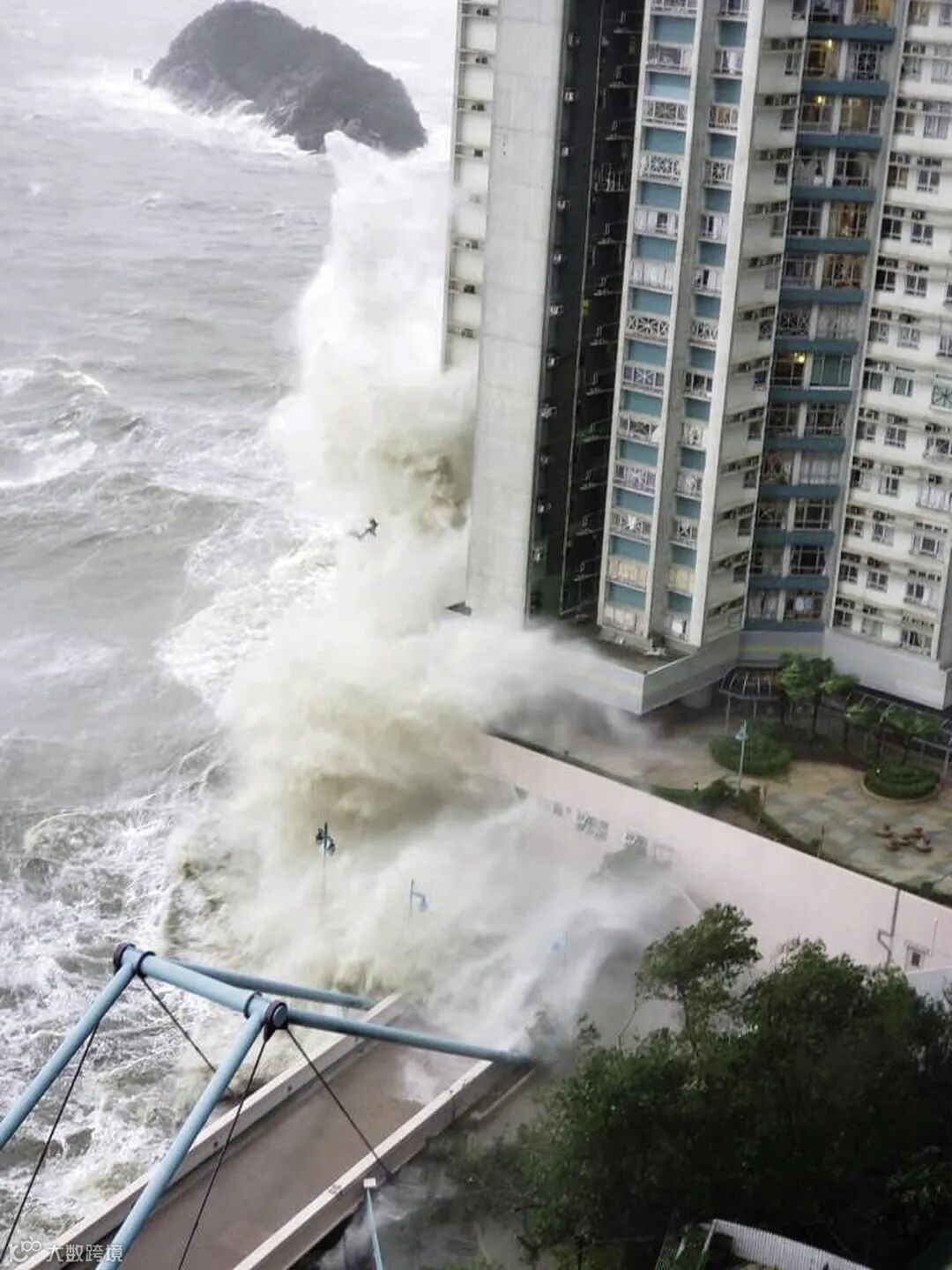 圖 | 2018年9月16日,「山竹」襲港,巨浪沖擊沿岸地區,造成嚴重破壞。(照片選自香港天文台網頁——山竹風暴破壞互動地圖,攝影:HCChan)