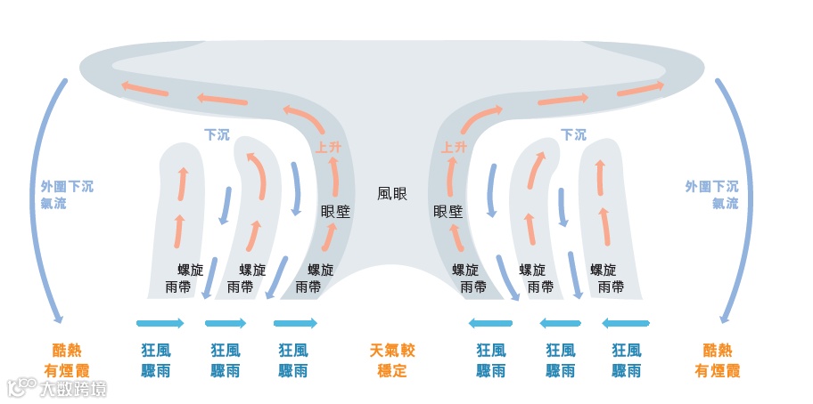圖 | 熱帶氣旋不同位置的天氣變化