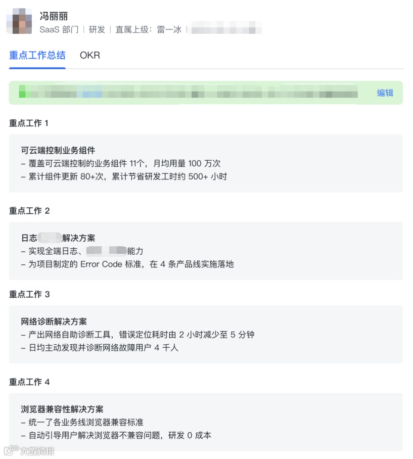 雷一冰说,看着这份总结,你就能知道她完成了什么样的重点工作。而且,不仅仅是目标完成了没有,你甚至能感受到,她在工作时的思考和努力。