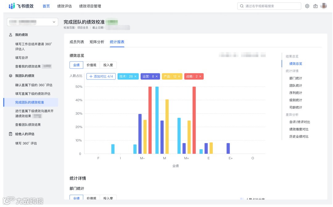 在飞书绩效里,设计了绩效的校准矩阵功能。可以根据矩阵,来对比不同员工的绩效是否合理。