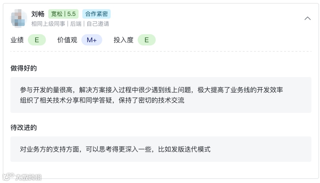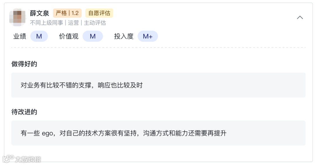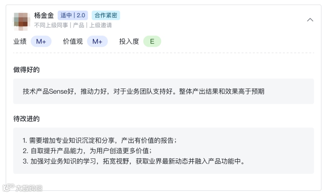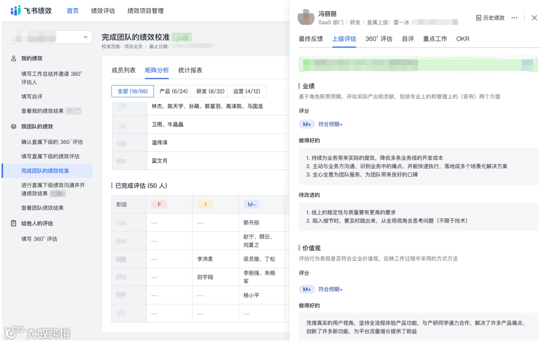 他说,我们在飞书绩效里,会用360度评估,让你周围的人,给你打分。你的表现,大家都看在眼里。因此360度评估,是非常有价值的信息。