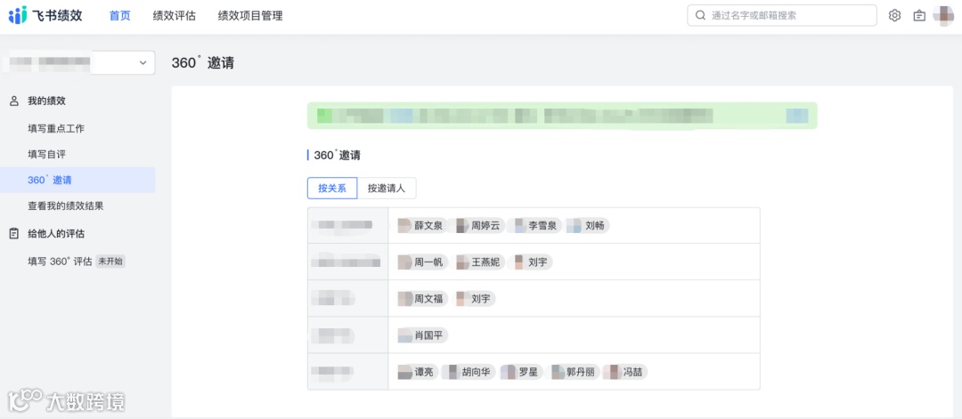 接下来,你就可以在飞书绩效里,邀请别人对你进行360度评估了。