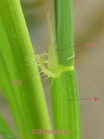 一、水稻:有叶舌有叶耳。(那个毛茸茸的的是叶耳,那个长长膜状物就是叶舌!